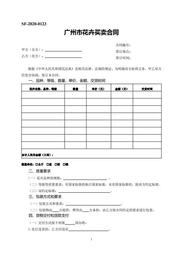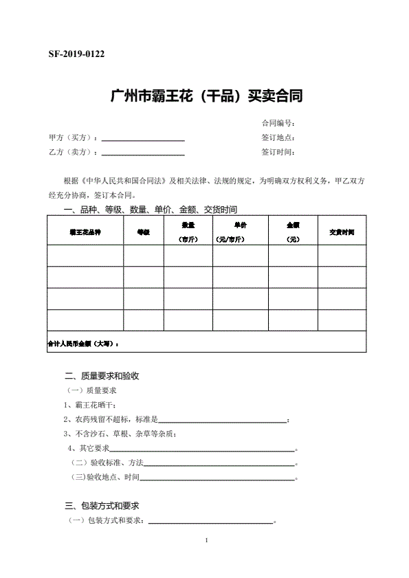 广州市霸王花(干品)买卖合同