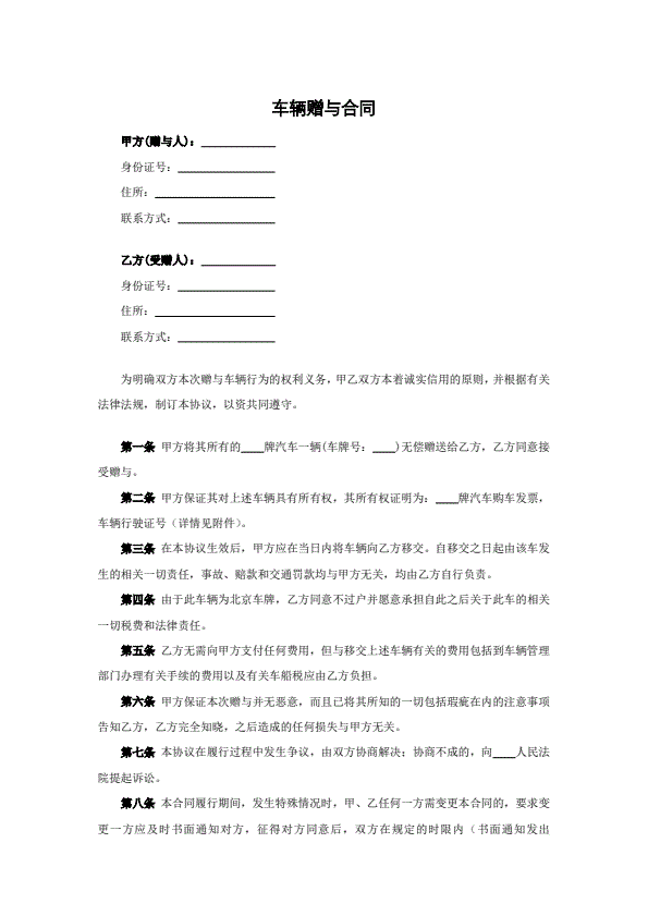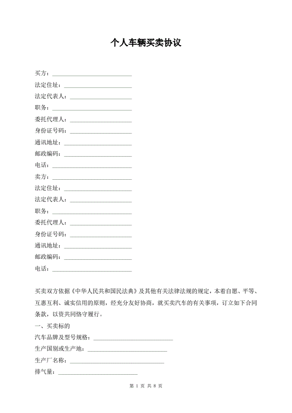个人车辆买卖协议