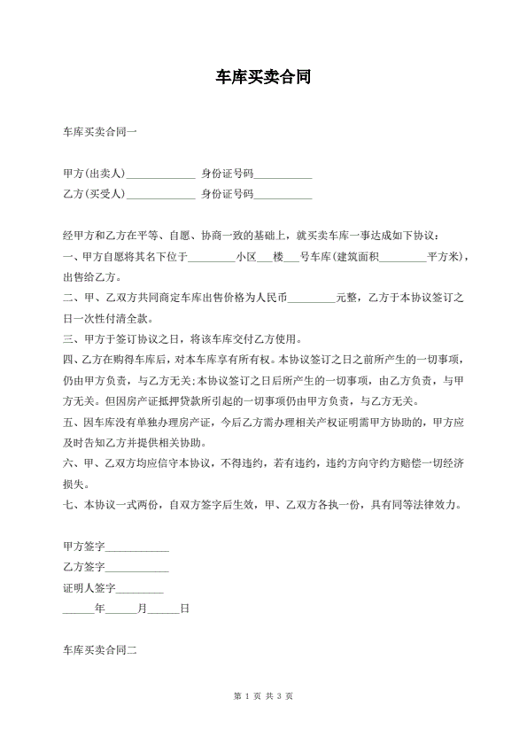车库买卖合同