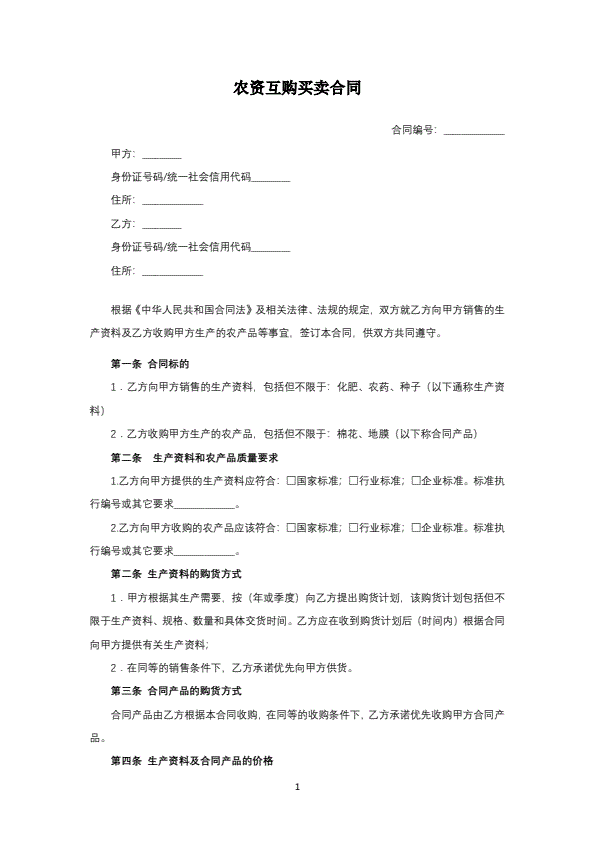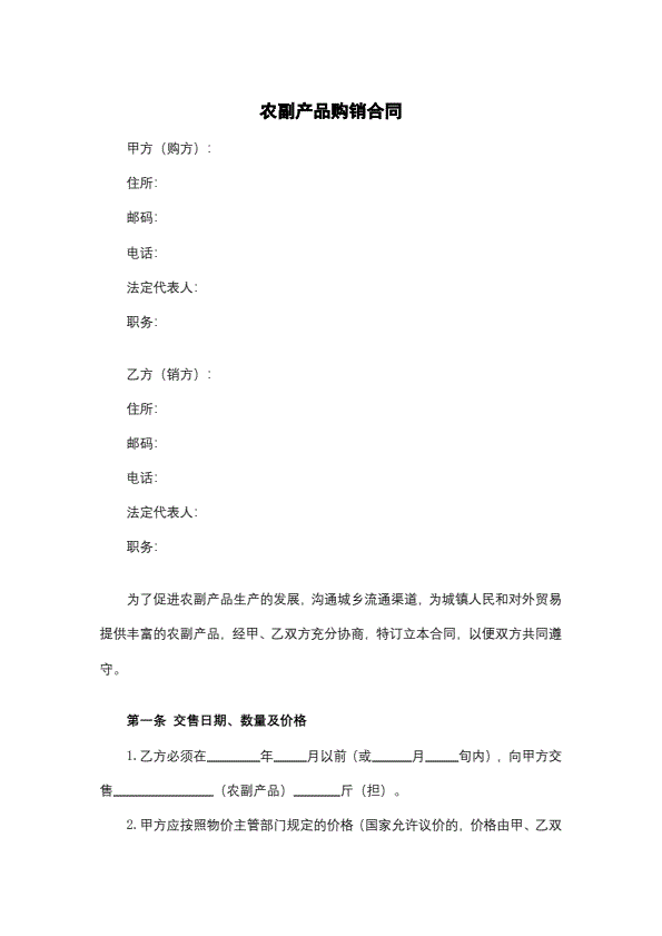农副产品购销结合合同
