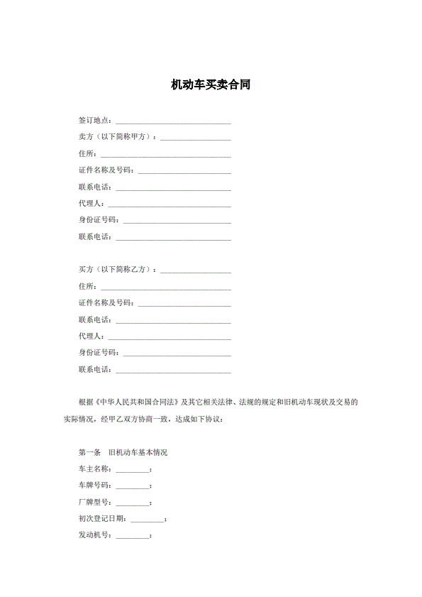福州旧机动车买卖合同