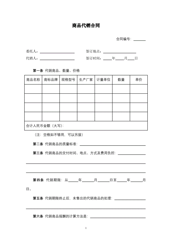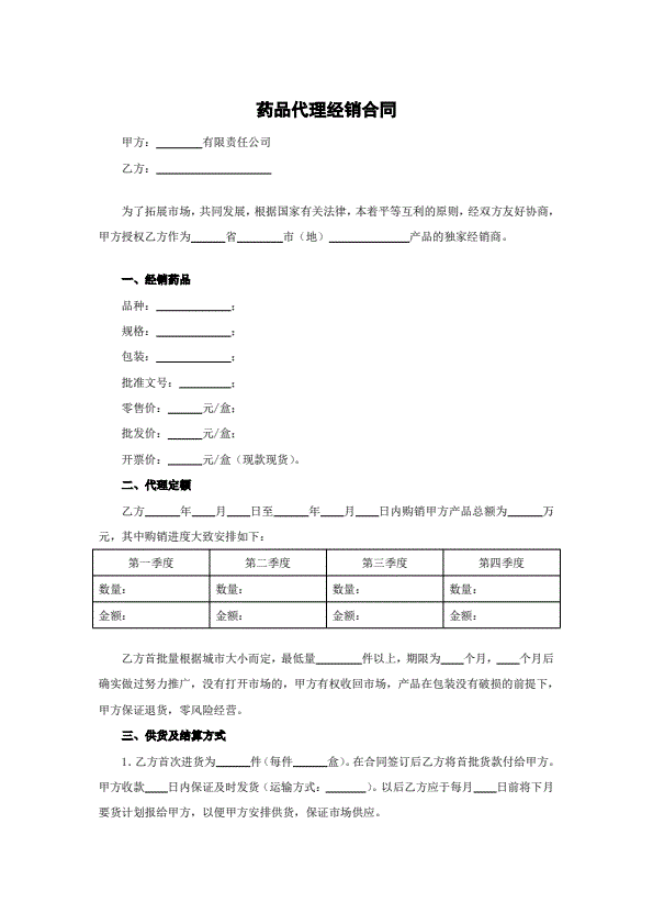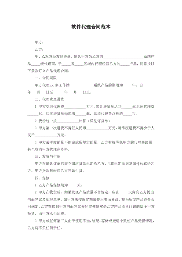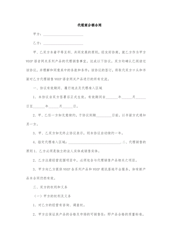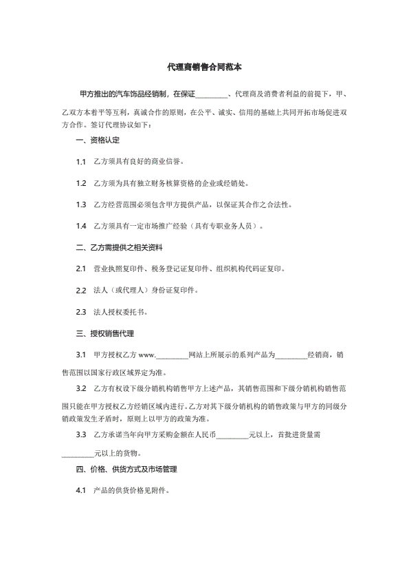 代理商销售合同范本