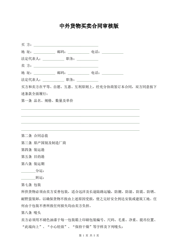 中外货物买卖合同审核版