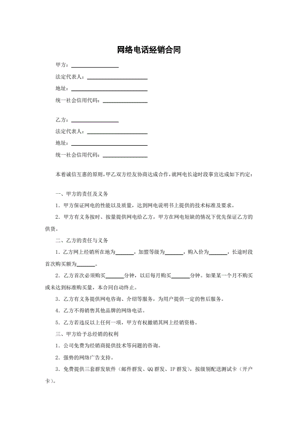 网络电话经销合同