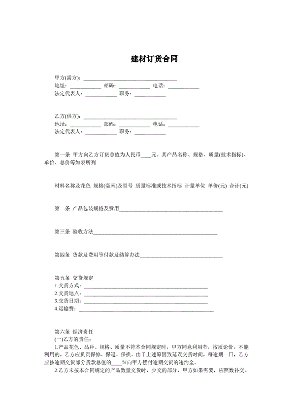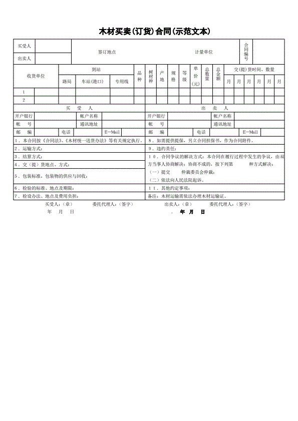 木材购销(订货)合同
