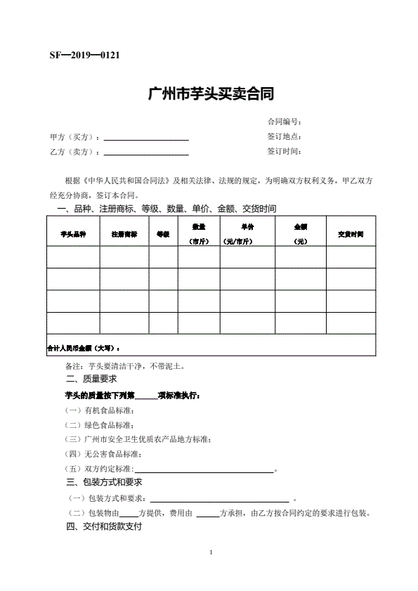 修订山西省农副产品买卖合同JF-03