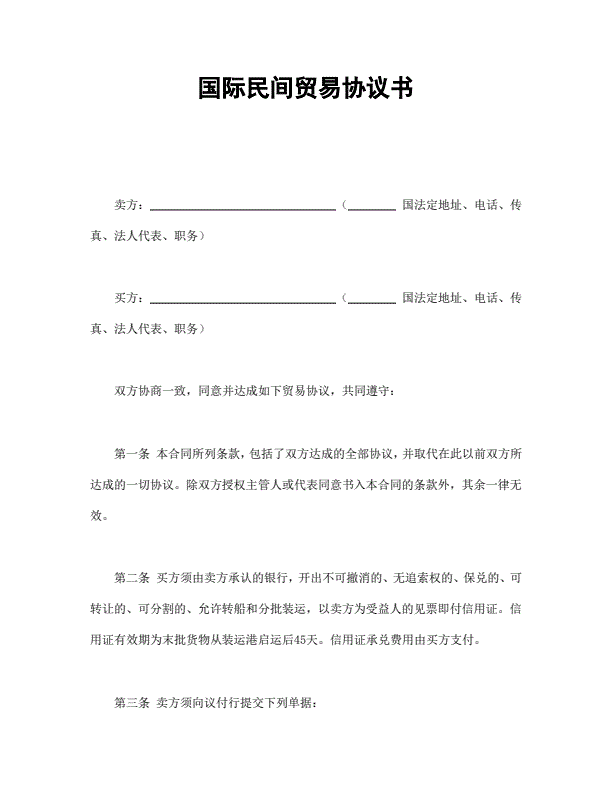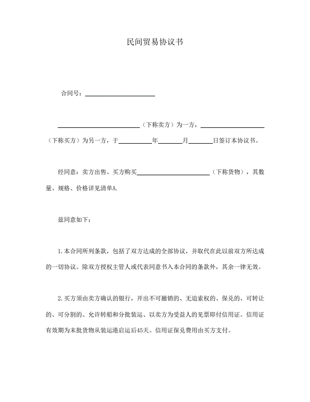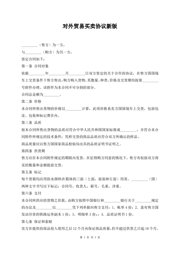 对外贸易买卖协议新版