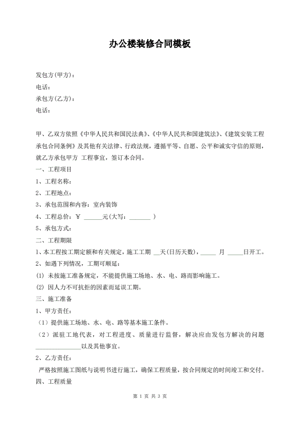 办公楼装修合同模板