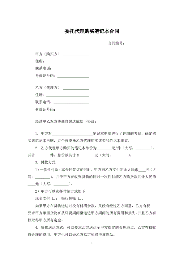 委托代理购买笔记本合同