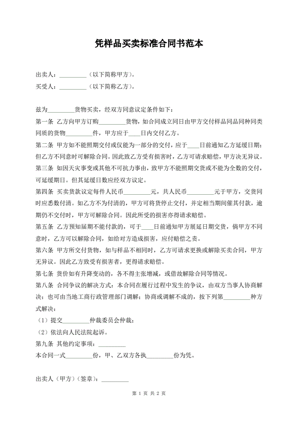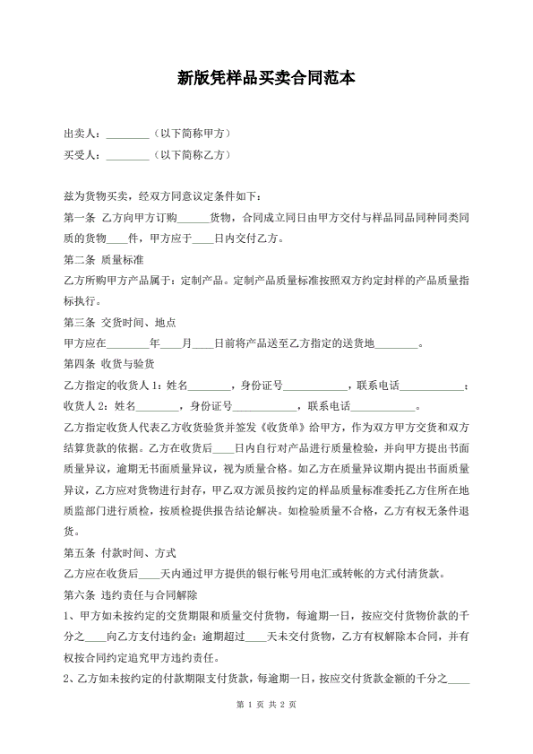 新版凭样品买卖合同范本