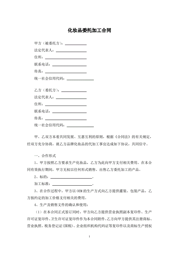 化妆品委托加工合同