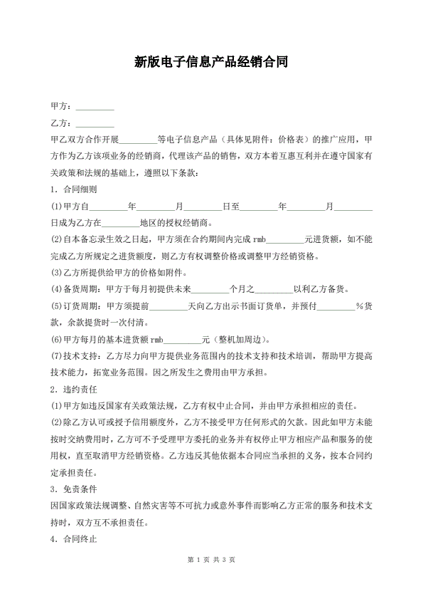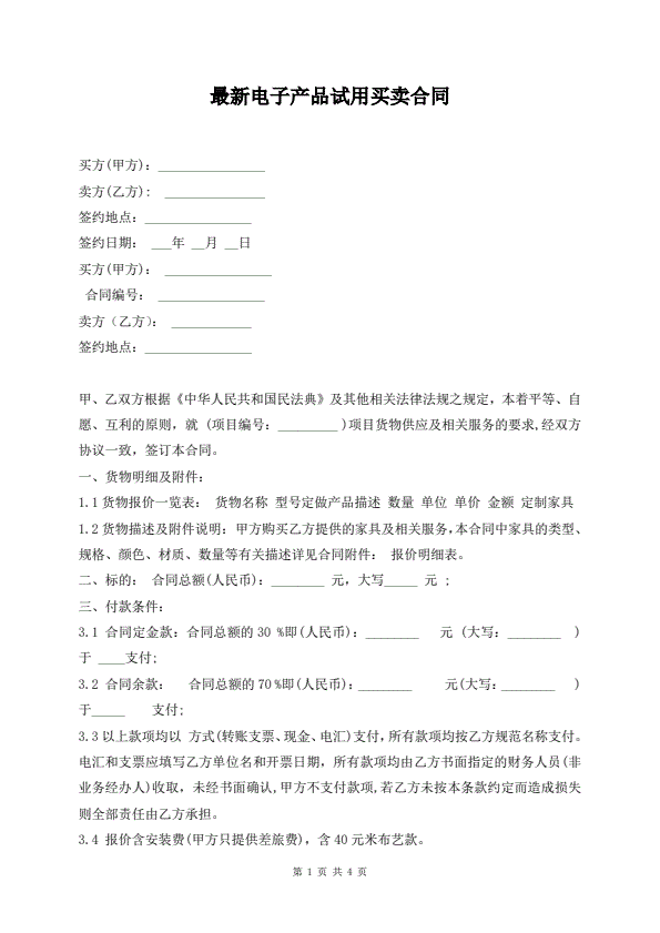 最新电子产品试用买卖合同
