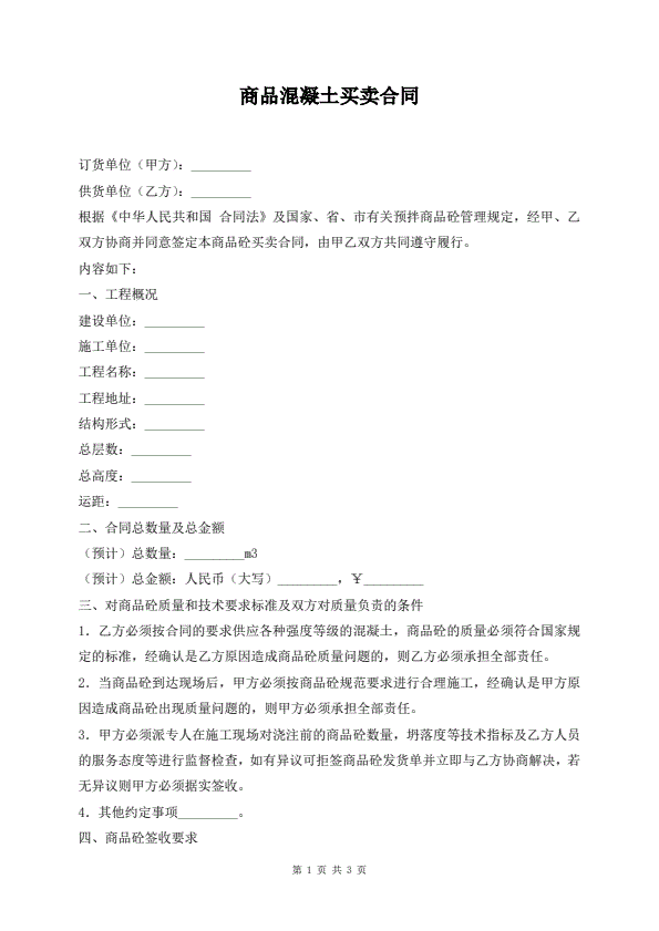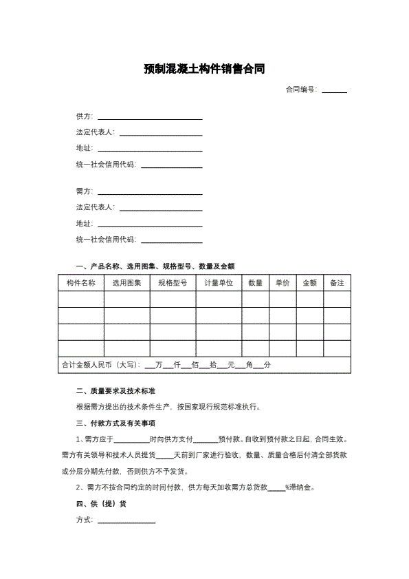 预制混凝土构件销售合同