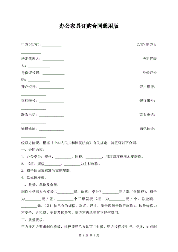 办公家具订购合同通用版