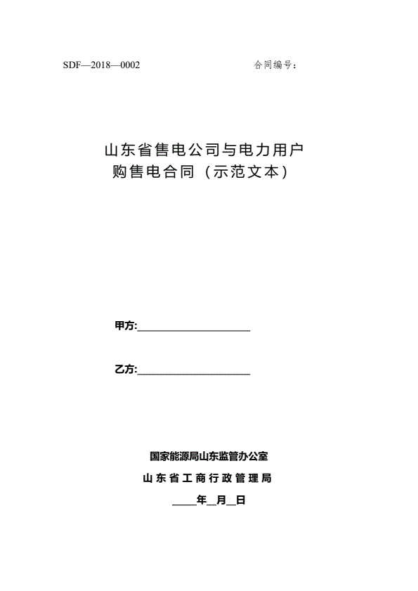 2018SDF-2018-0002《山东省售电公司与电力用户购售电合同(示范文本)》