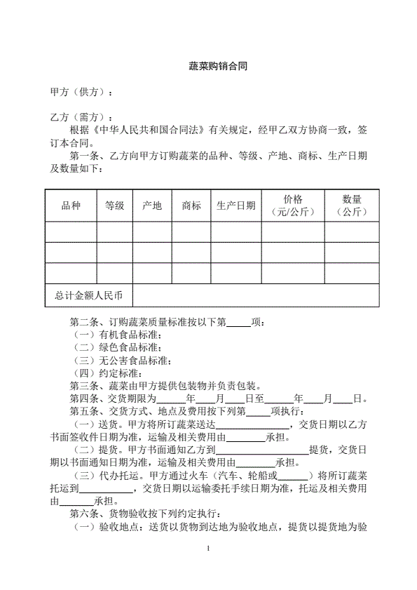 蔬菜购销合同