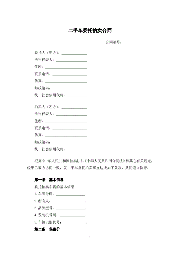 二手车委托拍卖合同