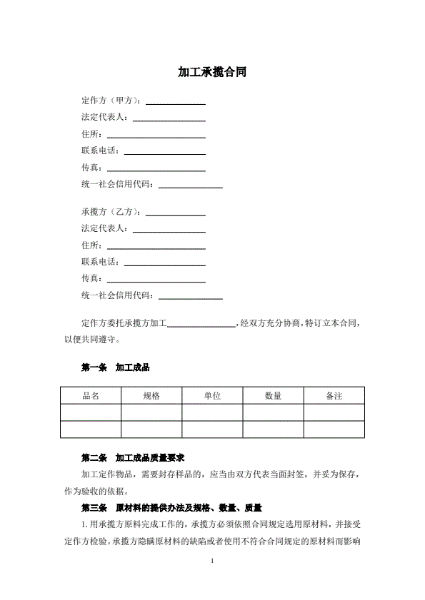 加工承揽合同(1)