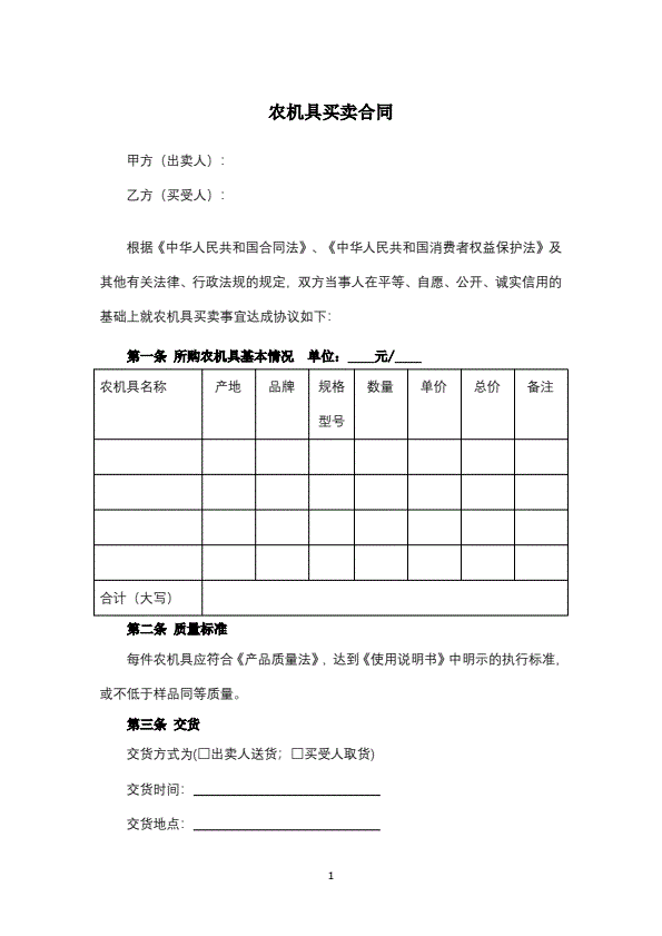 农机具买卖合同