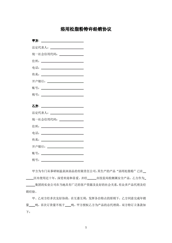 浴用松脂粉特许经销协议