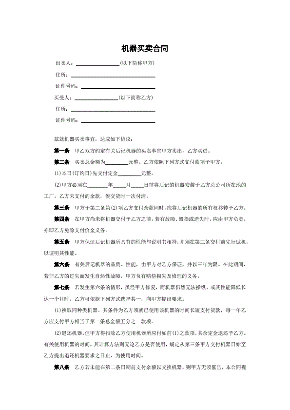 机器买卖合同