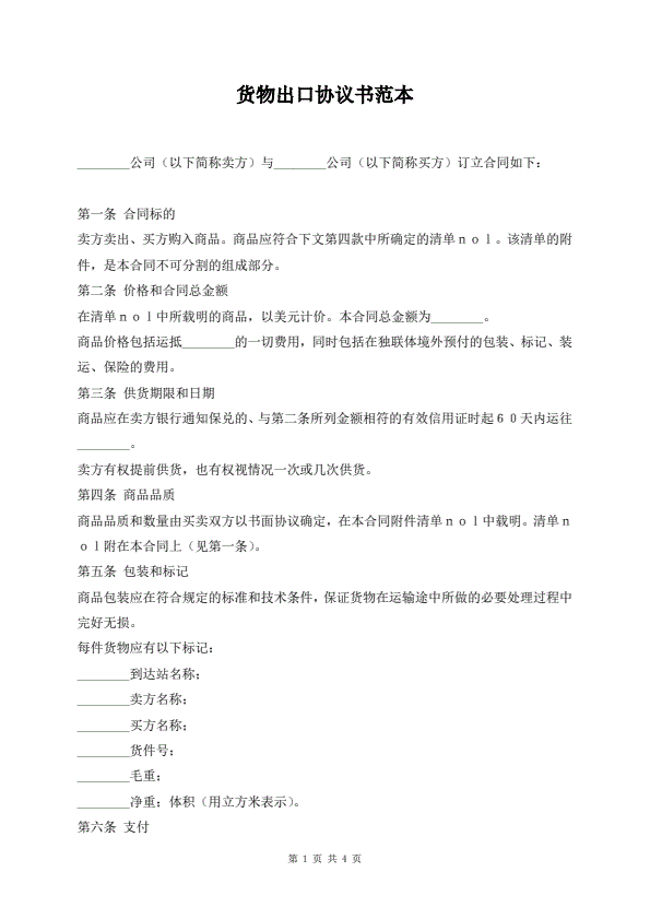 货物出口协议书范本