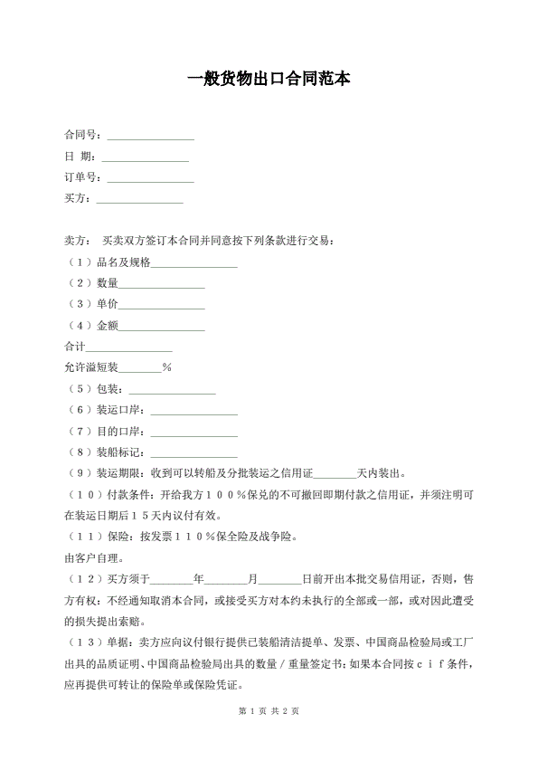 一般货物出口合同范本