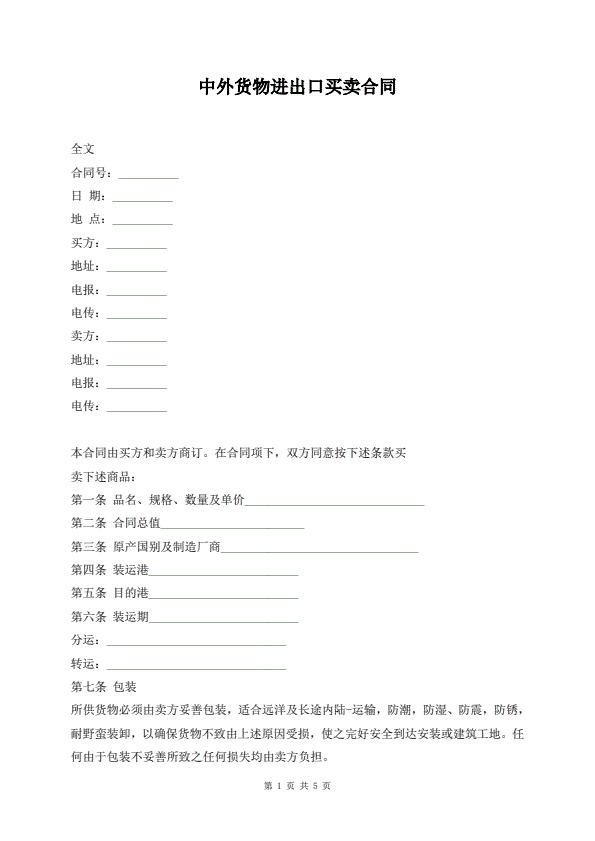 中外货物进出口买卖合同