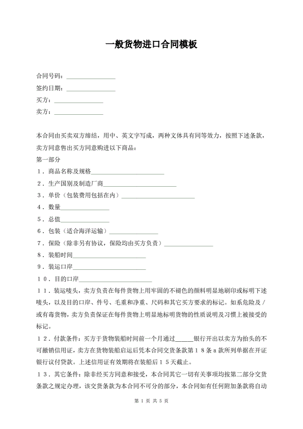 一般货物进口合同模板