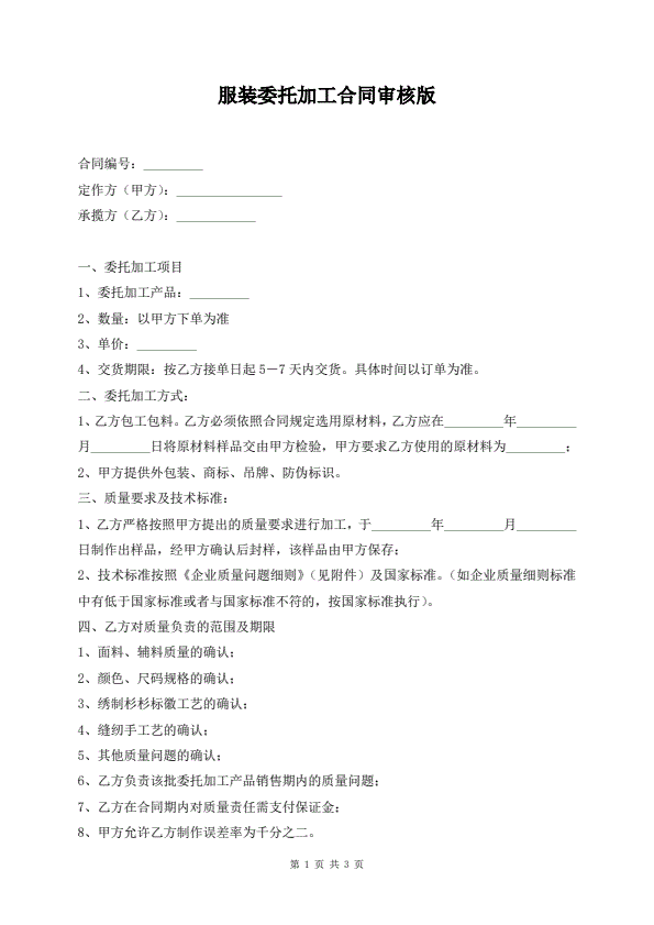 服装委托加工合同审核版