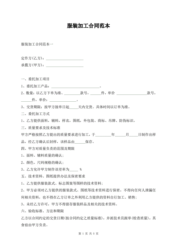 服装加工合同范本