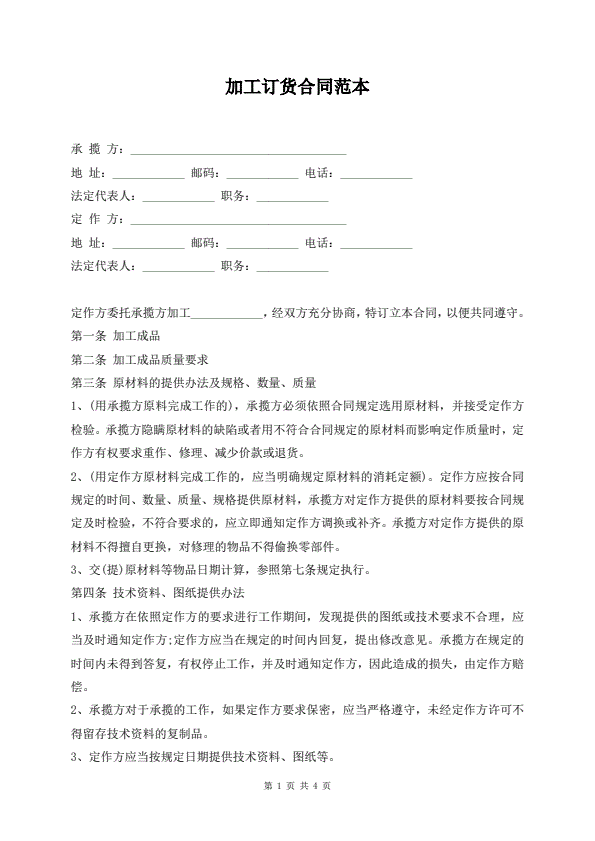 加工订货合同范本