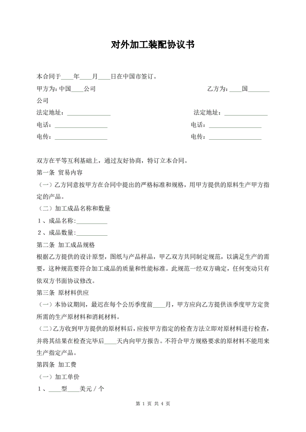 对外贸易加工装配合同
