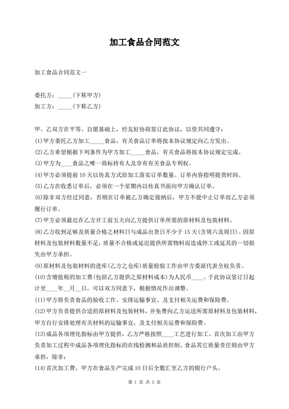 加工食品合同范文