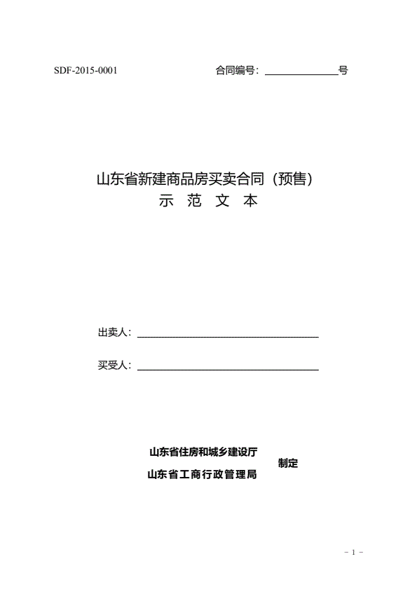 2015SDF-2015-0001《山东省新建商品房买卖合同(预售)示范文本》